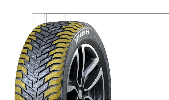 До 34 дорожек расположения шипов и на 80% увеличенное их количество на рисунке протектора создают эффективное сцепление в пятне контакта шины с ледяной и укатанной снежной поверхностью дороги при динамичном разгоне или торможении обеспечивая безопасную и комфортную эксплуатацию